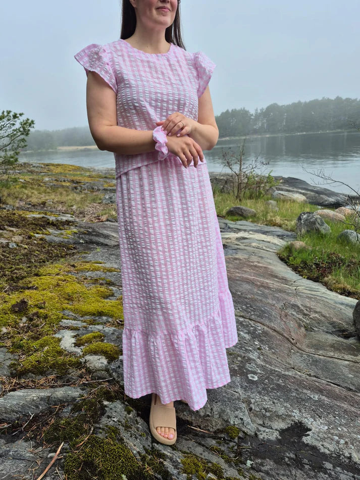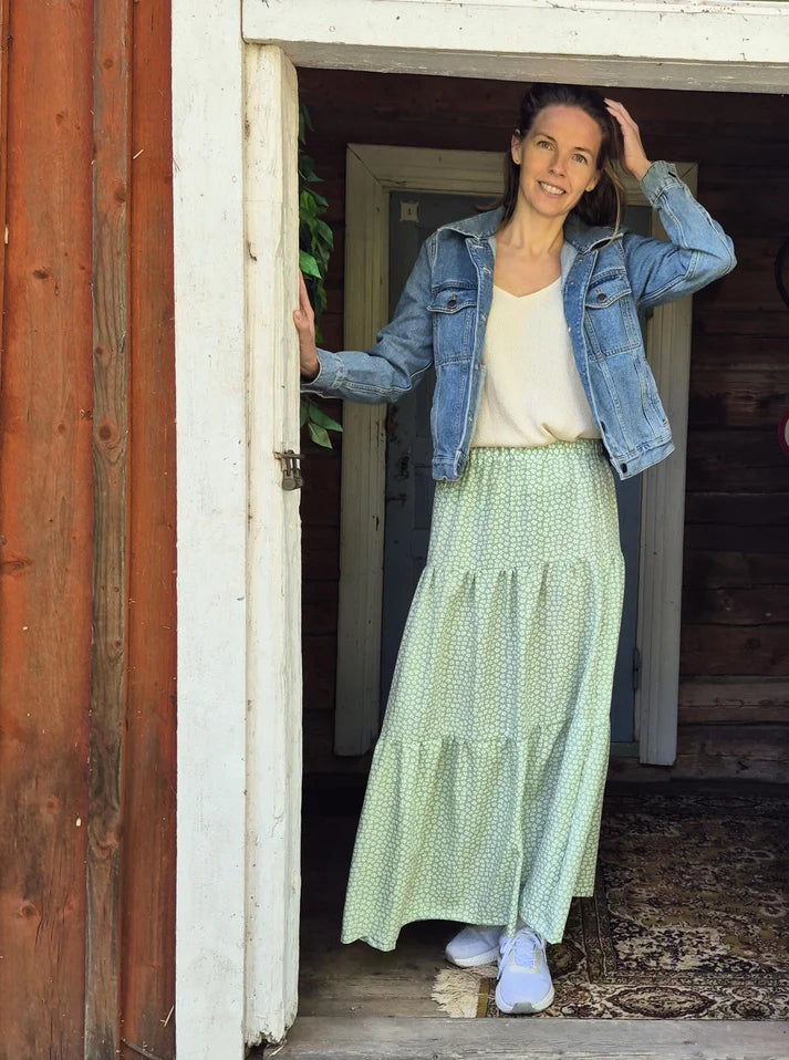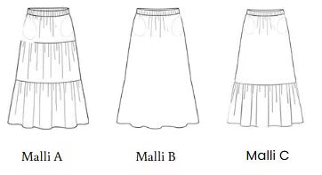 Julia ompelukaava on suunniteltu aikuisten kokoon 34-52 joustamattomalle materiaalille. Ihana hamekaava pitää sisällään kolme eri versiota. Kolmen kerroksen hame, A-mallinen hame ja hane, jossa frillakerros helmassa. Kaavassa on mukana myös sivutaskut, jotka on helppo ommella. Julia hameessa on kuminauhakiristys vyötärökaitaleella. Kevyt hulmuhelma esimerkiksi pellavasta, viskoosista tai double gauzesta kesän menoihin. Kaikissa Kaavalan kaavoissa on hyvät ja selkeät ompeluohjeet. Mukana on paljon valokuvia havainnollistamassa ompeluvaiheita.