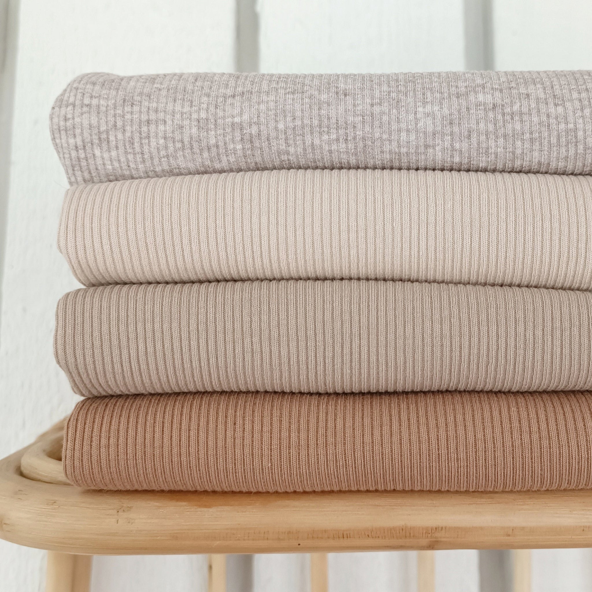 Ihanan pehmeä ribbitrikoo monenlaiseen vaate-ja asusteompeluun. Voi käyttää myös resorina ja kanttaukseen. Ihanan tuntuinen käytössä, joustaa ja myös palautuu hyvin.