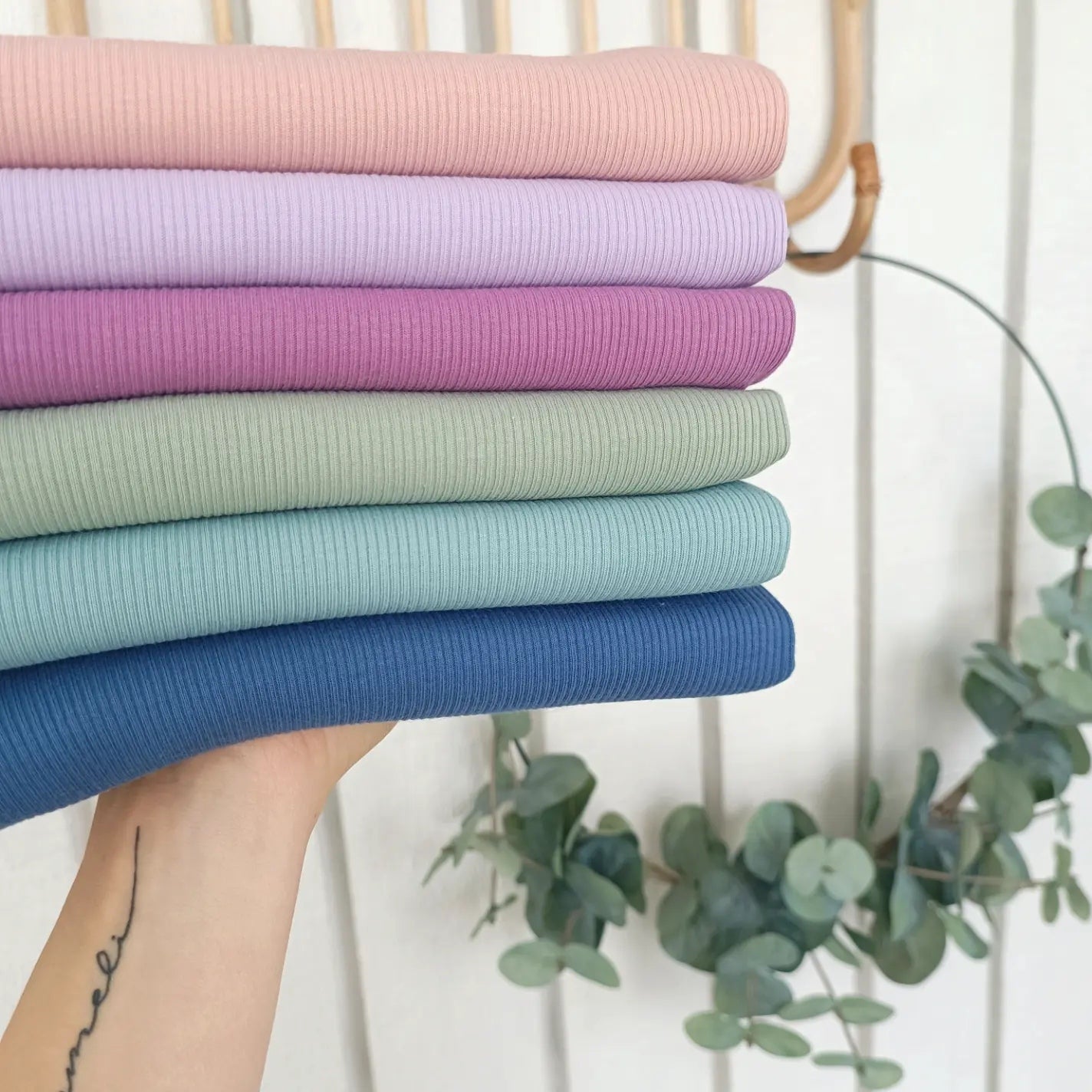 Pehmeä ja laskeutuva ribbitrikoo monenlaiseen vaate- ja asusteompeluun. Sopii myös resoriksi ja kanttaukseen. Ihanan tuntuinen käytössä, joustaa ja myös palautuu hyvin.
