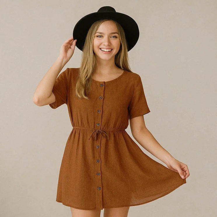 • Lataa kuva Galleria-katseluun, VISKOOSI-PELLAVA, KONJAKKI